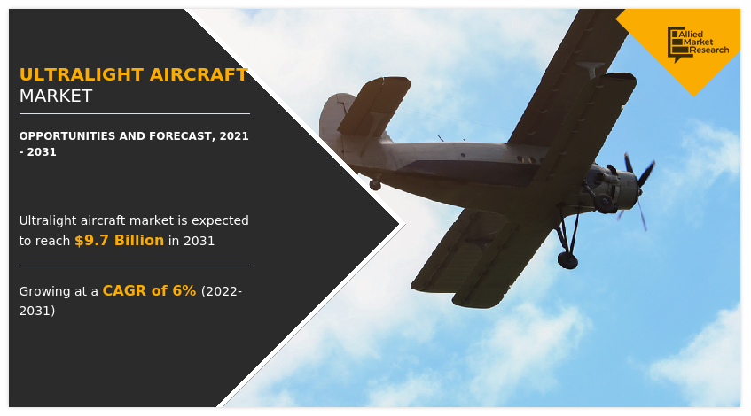 WILMINGTON, DE, UNITED STATES, October 3, 2025 /EINPresswire.com/ -- The global ultralight aircraft market size was generated $5.6 billion in 2021, and is projected to reach $9.7 billion by 2031, growing at a CAGR of 6% from 2022 to 2031.Surge in disposable income, delay in delivery of conventional aircrafts, low-cost of acquiring ultralight aircrafts, maintenance of ultralight aircrafts, increase in the use of ultralight aircrafts in recreational and sports activities, and persistent technological advancements will drive the growth of the global ultralight aircraft market. Closed manufacturing facilities, reduction on workforce, downfall of the tourism industry, and lack of raw materials during the pandemic negatively impacted the global market.